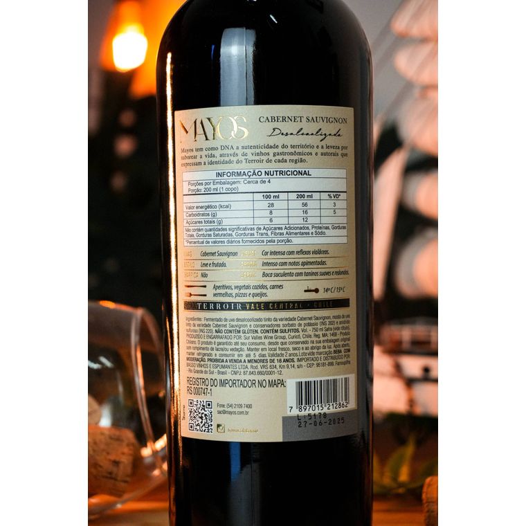 VINHO TINTO DESALCOOLIZADO CABERNET SAUVIGNON MAYOS 750ML